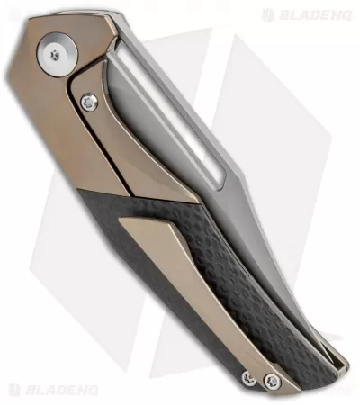 Adam Purvis joined forces with We Knife Co. to bring you his first APurvis Blades production line, the Primordial. This Blade HQ exclusive model sports a bronze titanium handle with carbon fiber scales and a bead blasted clip point blade. Adam wanted to create a high quality EDC knife at a price point that normal working people could afford. The Primordial is nimble and lightweight in hand, with a modified clip point blade that provides versatile cutting performance with a sharp tip and a slight recurve edge. Tackle your daily cutting tasks in style with the Primordial from APurvis Blades.