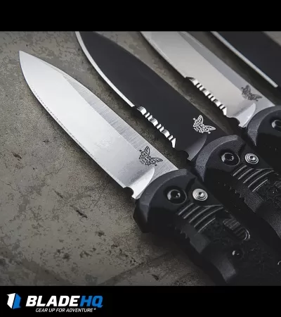 This 4400SBK Casbah model is equipped with a black Grivory handle and a black finished S30V blade with a partially serrated edge. The Benchmade Casbah automatic offers fast-response automatic action with a lightweight, high traction handle. A front loaded push button and sliding safety make operation a breeze, with a reversible tip-up pocket clip for versatile everyday carry. The Casbah is available with black or blue Grivory handles and a variety of blade finishes. Rock the Casbah with this solid, lightweight automatic from Benchmade Knives.