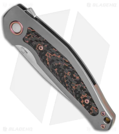 - Contoured titanium handle with copper fat carbon fiber inlay.