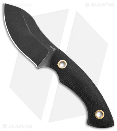 This Nessmi Pro fixed blade knife is EXCLUSIVE to Blade HQ! It sports our signature Smokewash finish on its D2 blade and has brass pins holding its midnight black micarta scales to its full tang.