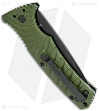 Boker Plus Strike Drop Point Automatic Knife OD Green (3.25" Black D2) -Knife Shop Boker Plus Strike DP Auto OD Green Black BHQ 97033 jr spine