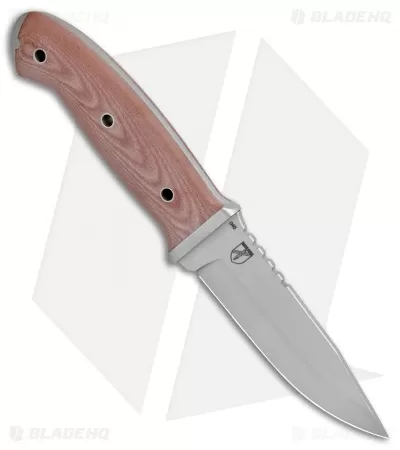 The T3 from Boker is a classic fixed blade design made of premium materials. It’s made of Bohler N690 with full-tang construction, has a brown micarta handle, and comes with a premium leather sheath. The sheath is very modular, able to be carried right or left side, vertical or horizontal carry.