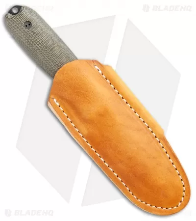 - Horizontal leather belt sheath with plastic insert for proper blade alignment.
