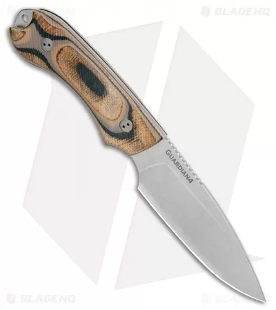 The Guardian4 offers a larger blade that is well-suited for camping and hiking activities. It shares the same design as the Guardian3 and is available in several blade finish options. The choil is designed to easily strike a ferro rod and the handle has 3D scales that provide a full, comfortable grip (spanner #6 is required to remove scales). Each knife includes a premium leather sheath with a protective plastic blade insert and is set up for vertical carry.