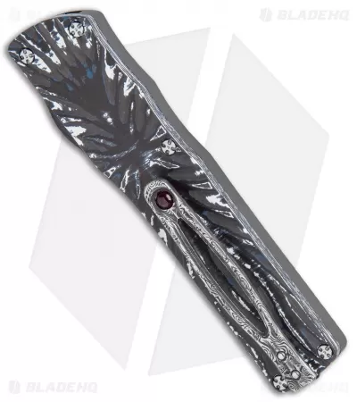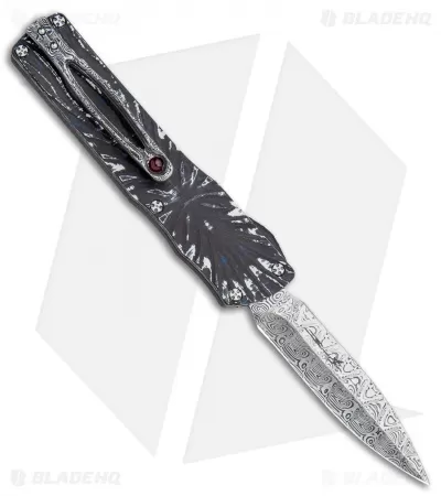This custom Small Twist Tighe OTF offers a stunning Brian Tighe design with a 3D machined aluminum and blue and white Fat Carbon Fiber handle. The damasteel blade comes in a dagger style with a plain edge. Item includes a damascus pocket clip and a carbon fiber thumb slide. Add an instant upgrade to your knife collection with the Brian Tighe Custom OTF.