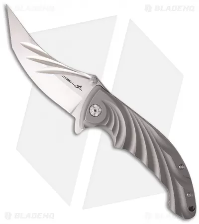 This Tighe Stick knife was acquired through a collector. It is in excellent condition. It features a fluted titanium handle with a matte finish and an open build design. The hardware and pocket clip are satin finished. The BG-42 stainless steel blade has a high satin finish, flat grind and upswept tip. The blade has ambidextrous thumb studs and an integrated flipper/guard. The Tighe Stick utilizes the Sealed Thrust Bearing System (STBS) for superb action and very, very little to no lateral blade play.