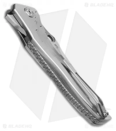 We’re fascinated by Brian Tighe’s designs and the Tighe Zip flipper is no exception. This custom Tighe Zip folder has a 4-step milled titanium handle with a button lock and machined backspacer. The blade is compound ground with a stonewashed, mirror polished finish and is marked #5 on the back side. Direct from the maker.