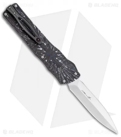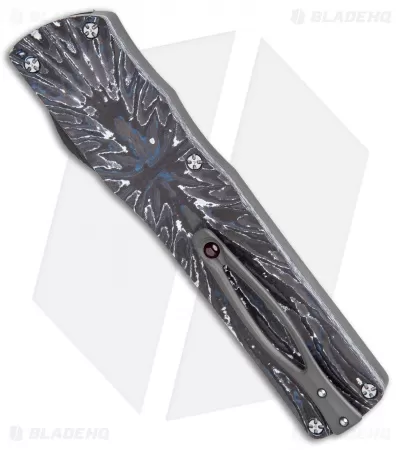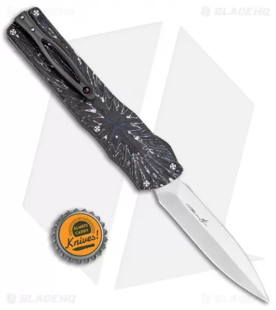 This custom Twist Tighe OTF offers a stunning Brian Tighe design with a 3D machined aluminum and blue and white Fat Carbon Fiber handle. The hand-satin finished RWL-34 blade comes in a dagger style with a plain edge. Item includes a titanium pocket clip and a carbon fiber thumb slide. Add an instant upgrade to your knife collection with the Brian Tighe Custom OTF.