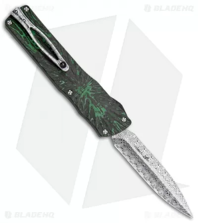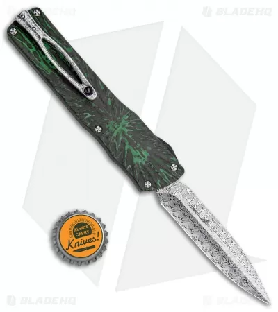 This custom Twist Tighe OTF offers a stunning Brian Tighe design with a 3D machined aluminum and green Fat Carbon Fiber handle. The damasteel blade comes in a dagger style with a plain edge. Item includes a damascus pocket clip and a carbon fiber thumb slide. Add an instant upgrade to your knife collection with the Brian Tighe Custom OTF.