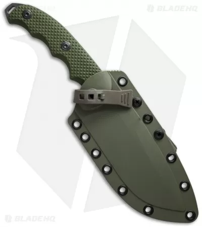 Designed as a tactical utility knife, the Black Label Committed fixed blade is made for hard work. The deep belly drop point blade with its large hollow grinds tackle chopping and fine cutting chores with relative ease. Milled, diamond textured OD green G-10 on the handle provides a slip-resistant grip in combination with the four finger grooves. The Committed fixed blade includes a molded polymer sheath with belt attachment system.