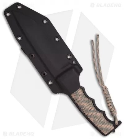 The Stone Cold Tanto knife from Browning’s Black Label line. The shark-like imposing Stone Cold Tanto Cord features a hefty tanto point blade crafted of matte black 440 stainless steel with a hollow grind, partial edge serrations, a pronounced front guard plus a squared pommel with a hardened glass breaking point. The finger-grooved handle is a full tang design and is hand-wrapped with durable desert camo paracord for a sure grip in all conditions. The matte black Blade-Tech molded polymer sheath allows you to position the Stone Cold at virtually any angle and mounts securely to your belt, web gear or tactical vest. Stone Cold means you’re ready for the heat of battle.