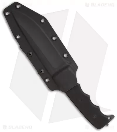 The shark-like imposing Stone Cold features a hefty spear point blade crafted of matte black 440 stainless steel with a hollow grind, partial edge serrations, a pronounced front guard plus a squared pommel with a hardened glass breaking point. The finger-grooved handle is a full tang design and has black G10 scales. The matte black Blade-Tech molded polymer sheath allows you to position the Stone Cold at virtually any angle and mounts securely to your belt, web gear or tactical vest. Stone Cold means you’re ready for the heat of battle.