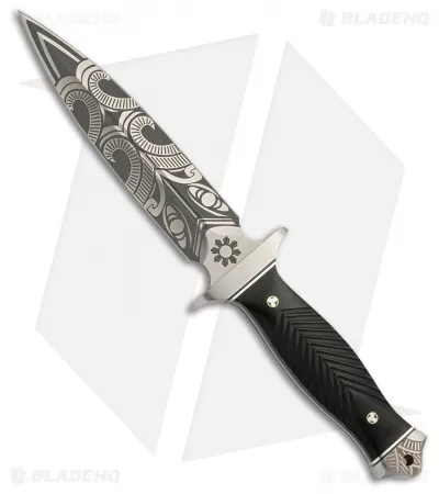 - 7Cr17MoV stainless steel, dagger blade has a satin finish and Maori warrior tribal motif artwork.