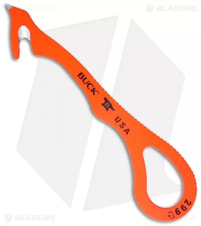 Made to quickly and safely cut through straps and rope, the 299 Strap Cutter from Buck is an emergency rescue tool. It features Sandvik 12C27MOD steel construction with a highly visible, bright orange finish. Designed for comfort, grip, and general ease of use with notches around the edge at contact points. The hole at the base of the handle provides maximum pulling power and the breaker on the opposite end makes quick work of glass in an emergency situation.