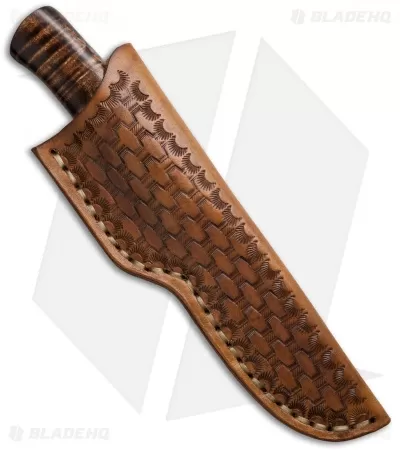 This Drop Point Hunter from Burr Oak Knives has a clay hardened W2 steel blade and the ironwood handle is accented with maple and a polished nickel silver blade guard. The balance and feel on this knife in hand is exceptional. Includes a brown basket weave sheath.