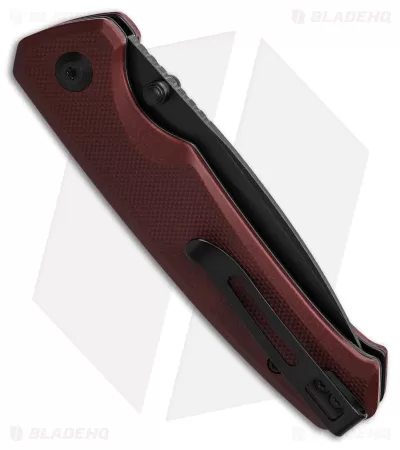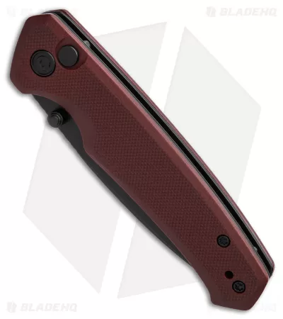 - Burgundy G-10 handle scales on steel liners.