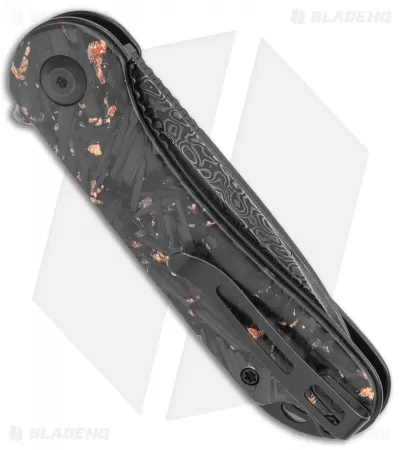 - Contoured shredded carbon fiber handle with copper shred accents and a clear resin coat.