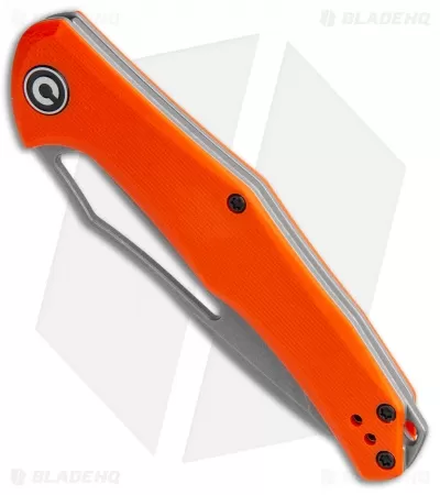 This Fracture model has an orange G-10 handle and a drop point blade.