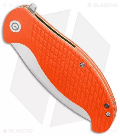This model of the CIVIVI Naja comes with an orange G-10 handle and a gold stainless steel liner.