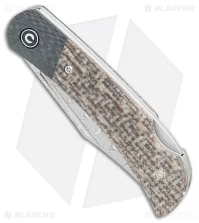 This Rustic Gent has a “Matrix” micarta handle and a Damascus steel blade.