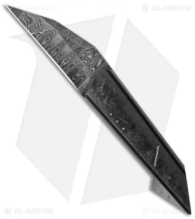 The X-Ploit Flipper is another stellar folding knife design from Corrie Schoeman. This model has a marbled carbon fiber handle over a thin black G-10 scale. The liners and titanium backstrap are filed and feature with Ruby & Citrine inserts on the spacer. The angular wharncliffe style blade is Texas Knives Damascus steel. The action on this knife is super smooth with a ball-bearing pivot and it has an excellent build.