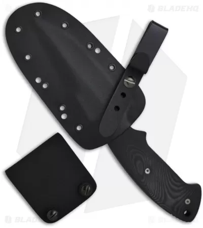 The Kasper Fighting Fixed Blade knife was designed as a companion to the Kasper Fighting Folder. The S30V stainless steel blade is satin finished and is a little over 1/8 thick. The blade is double ground with the top edge sharpened. The handle features Black linen Micarta scales that are perfectly contoured for exceptional fit and feel with a flared end.
