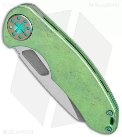 - Green stonewashed titanium handle.