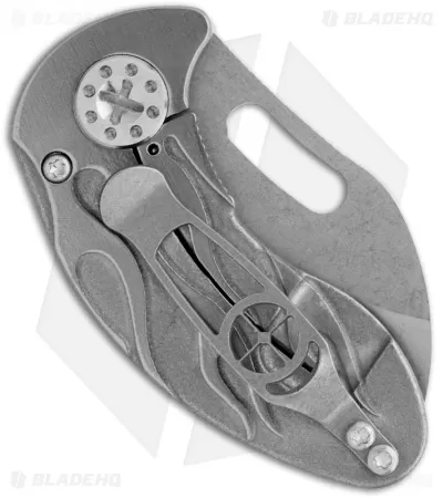 The Nano Framelock from Curtiss Knives is a small knife that scores big with performance and looks. It features a titanium framelock with a milled flame design. The blade is stonewashed CPM-154 steel with a thumb slot for opening. The spine of the blade has jimping and the curved handle has an excellent feel in hand. The Nano comes in a padded nylon pouch.