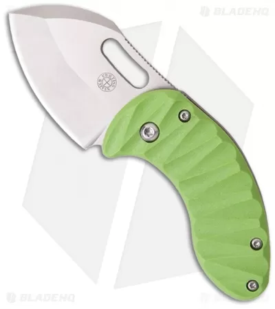 The Nano Framelock from Curtiss Knives is a small knife that scores big with performance and looks. It features a titanium framelock with an open build and CNC machined lime green G-10 scale. The blade is CPM-154 steel with a thumb slot for opening. The blade has a two-tone finish with stonewashed grinds and satin faces. The spine of the blade has jimping and the curved handle has an excellent feel in hand. The Nano has a tip-up carry pocket clip and comes in a padded nylon pouch.