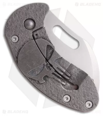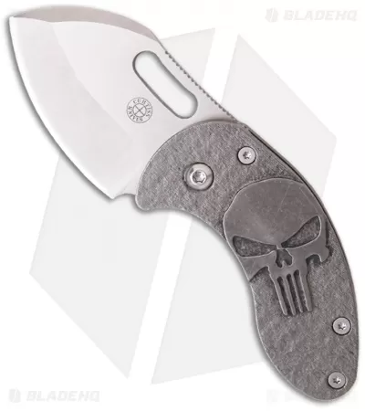 The Nano Framelock from Curtiss Knives is a small knife that scores big with performance and looks. It features a titanium framelock with a skull design. The blade is CPM-154 steel with a thumb slot for opening. The blade has a two-tone finish with stonewashed grinds and satin faces. The spine of the blade has jimping and the curved handle has an excellent feel in hand. The Nano comes in a padded nylon pouch.