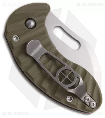 The Nano Linerlock from Curtiss Knives is a small knife that scores big with performance and looks. It features a titanium liner lock frame with an open build and CNC machined OD green G-10 scales. The blade is CPM-154 steel with a thumb slot for opening. The blade has a two-tone finish with stonewashed grinds and satin faces. The spine of the blade has jimping and the curved handle has an excellent feel in hand. The Nano has a tip-up carry pocket clip and comes in a padded nylon pouch.