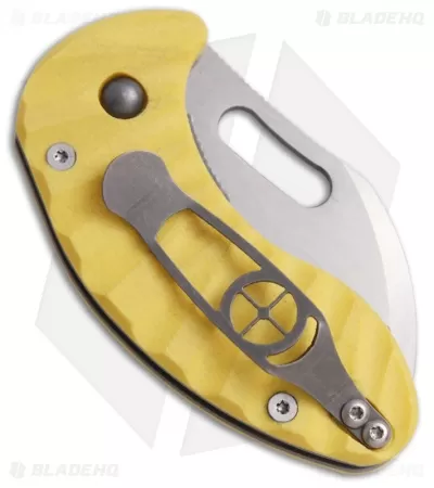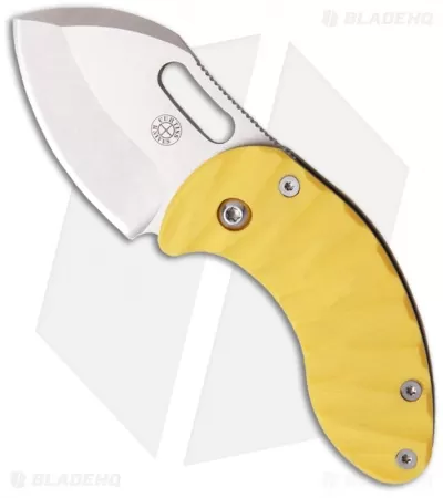 The Nano Linerlock from Curtiss Knives is a small knife that scores big with performance and looks. It features a titanium liner lock frame with an open build and CNC machined yellow G-10 scales. The blade is CPM-154 steel with a thumb slot for opening. The blade has a two-tone finish with stonewashed grinds and satin faces. The spine of the blade has jimping and the curved handle has an excellent feel in hand. The Nano has a tip-up carry pocket clip and comes in a padded nylon pouch.