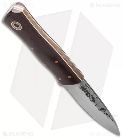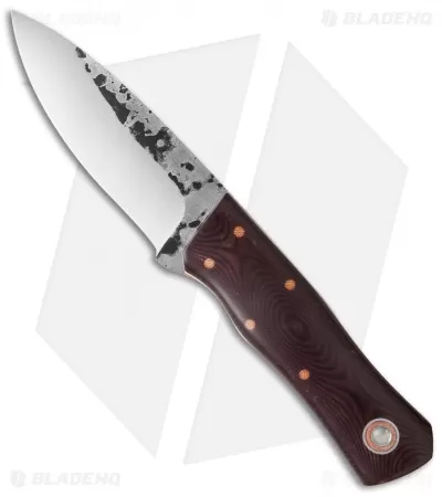 This Monarch knife has maroon linen Micarta scales with natural Micarta liners and white pinstripes. The O1 steel blade features tapered full-tang construction. Fiddleback Forge fixed blades are a real treat for those looking to acquire a premium handmade knife with an emphasis on comfort in hand, efficient blade dynamics, and a traditional style. Fiddleback Forge has made a name by crafting knives that look and feel great.