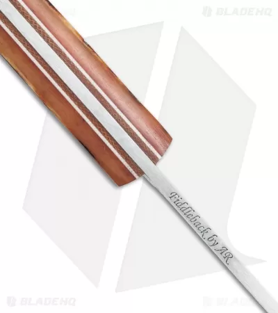 This Patch knife has bone scales with a natural Micarta liner and white stripe. Convex ground O1 steel tapered full-tang blade. The Patch fixed blade is a real treat for those looking to acquire a premium handmade knife with an emphasis on comfort in hand, efficient blade dynamics, and a traditional style. Fiddleback Forge has made a name by crafting knives that look and feel great.