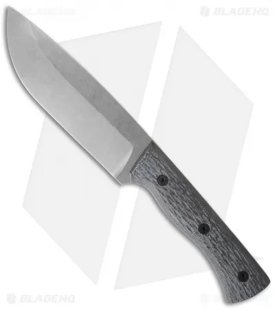 The Camp Knife is a large fixed blade with a wide-profile drop point shape. It’s full-tang blade is stonewashed CPM-3V steel and is outfitted with grooved black canvas Micarta scales. Includes a premium leather sheath.