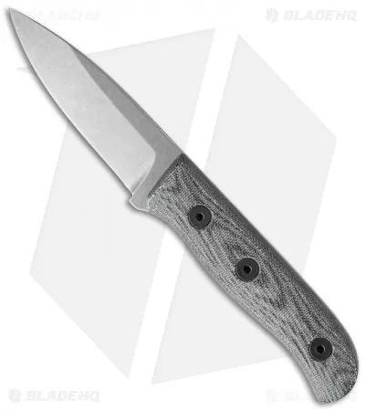 This production Hiking Buddy has a black canvas Micarta handle and straight full tang CPM-S35VN steel blade. Includes a premium leather sheath.