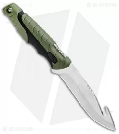 Buck Knives Buck Pursuit Large Guthook Fixed Blade Knife Green GFN (4.5″ Satin) 0657GRG