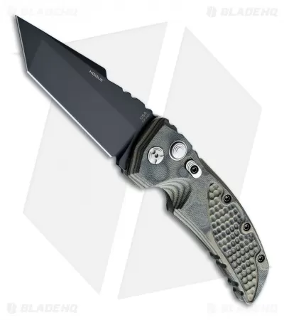 Hogue Knives’ EX01 Tactical Folder from their Extreme Series is now available as an automatic opening knife. The action is smooth and lockup tight via the button lock mechanism. There is also a front mounted safety to lock the blade. The green G-10 handle features a pattern the creators call “G-mascus” (G-10 & Damascus). The front of the handle has piranha texture for a better grip. The tanto style 154-CM tactical black finished blade has a razor sharp plain edge. For easy carry there is a large reversible pocket clip for tip-down or up carry.