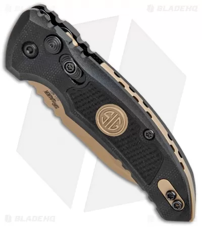 - Black colored handle made from G-10 with the Sig Sauer logo.