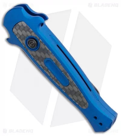 - Blue anodized aluminum handle with a carbon fiber inlay.
