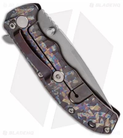 This model has a stonewashed S35VN steel blade and sculpted titanium handle with a special Kizer anodized finish. The pocket clip is designed for tip-down right hand carry.