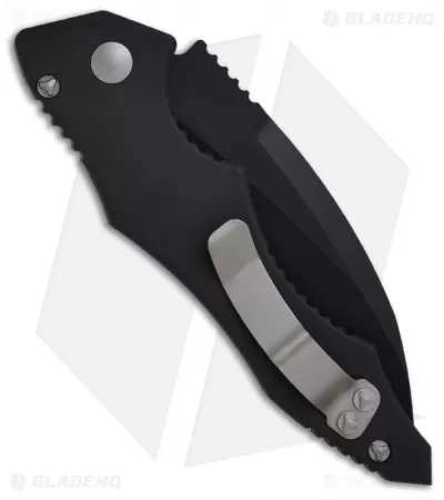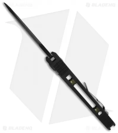 The Kestrel knife from Microtech has been revived as a 2011 model. This automatic knife features a bead blast finished 154CM stainless steel blade with a plain edge. The black finished aluminum handle has textured grip inserts on front. The frame is tapered front to back with an open build and barrel spacers. Includes tip-up pocket clip and a black sheath.