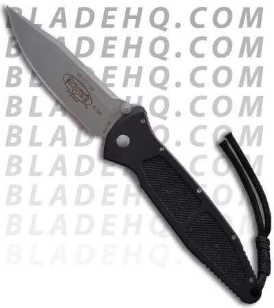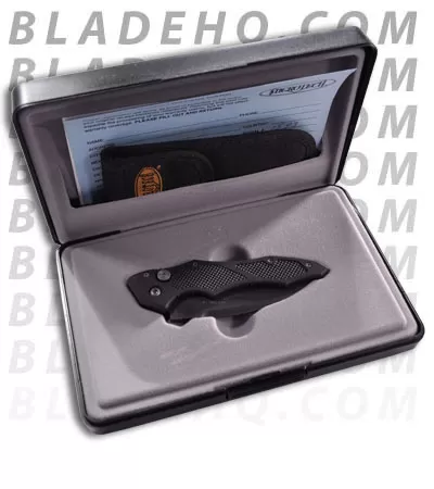 Manual Knife. Black anodized aluminum handle w/ grip inserts (front). Liner lock. 154-CM bead blast finished drop point blade (plain). Pocket clip (tip down). Comes w/ black nylon sheath & lanyard. These are great everyday users, perfect to carry!