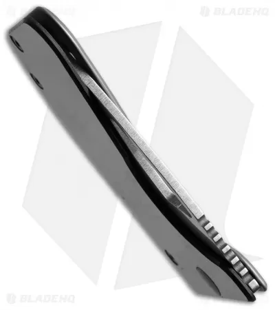 The Microtech Option II is a manual knife that is super slim and the size of a credit card. This knife has a polished carbon fiber handle with stainless framelock back. The blade is 154-CM steel with a stonewash finish and a plain edge.