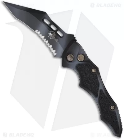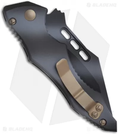 This Microtech Vector automatic knife features a urban camo finished blade and handle with bronze colored hardware and pocket clip. The S35-VN stainless steel blade has a partially serrated edge. The aluminum handle has textured grip inserts on front and the frame is tapered front to back with an open build and barrel spacers.