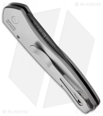 This Steel Custom Newport knife features a Chad Nichols stainless ladder pattern Damascus steel blade. The handle is hand satin finished 416 stainless steel with a 3K twill carbon fiber inlay. Satin hardware and pocket clip.