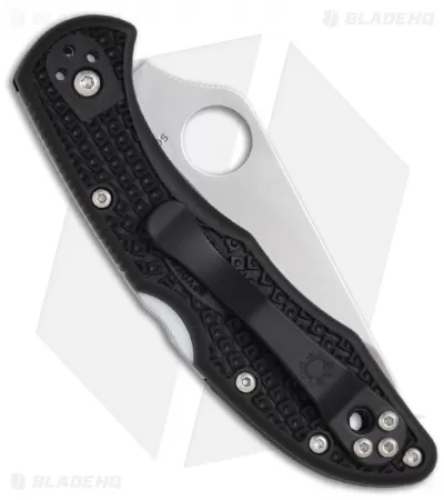 This Spyderco Delica 4 knife has a flat saber-ground VG-10 stainless steel blade that is satin finished with a plain cutting edge. The handle is black FRN.
